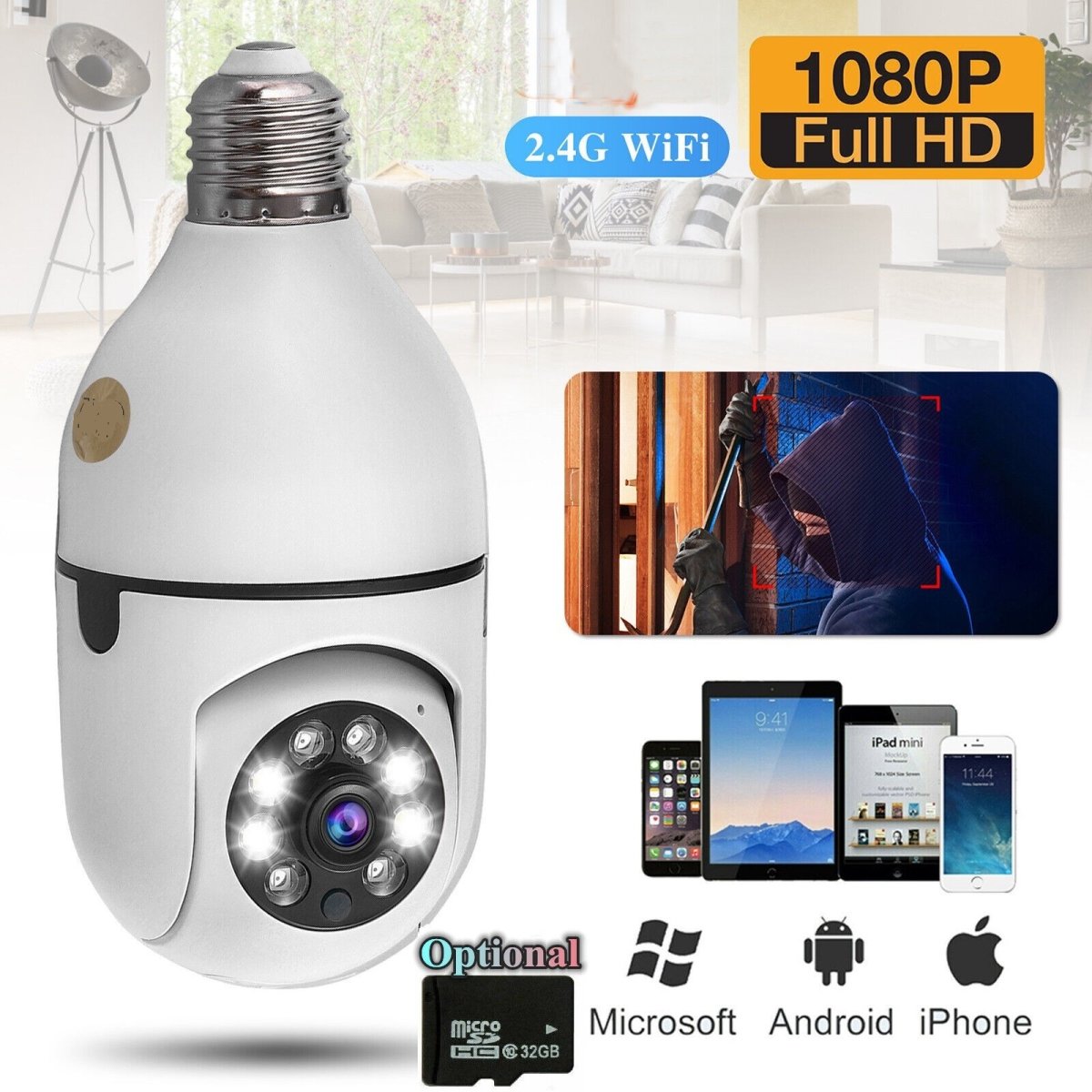 Cámara Ip BK-30, conexión por wifi, de enroscar como un bombillo.