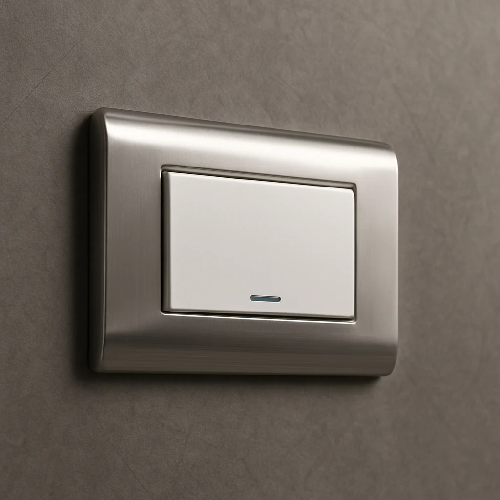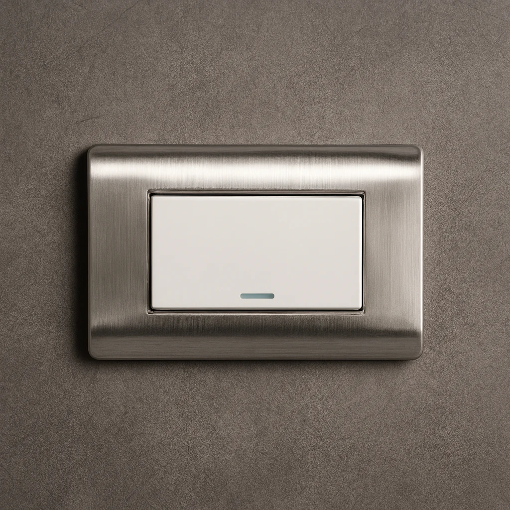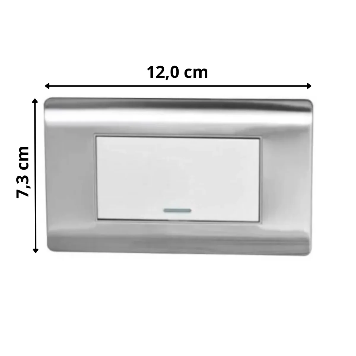 Este interruptor sencillo de uso conmutable y no conmutable está fabricado en acero inoxidable con acabado plateado, lo que le brinda un estilo moderno y una alta resistencia al desgaste. Su base metálica con pintura electrostática garantiza mayor durabilidad y protección contra la corrosión, ideal para espacios domésticos que requieren calidad y estética.