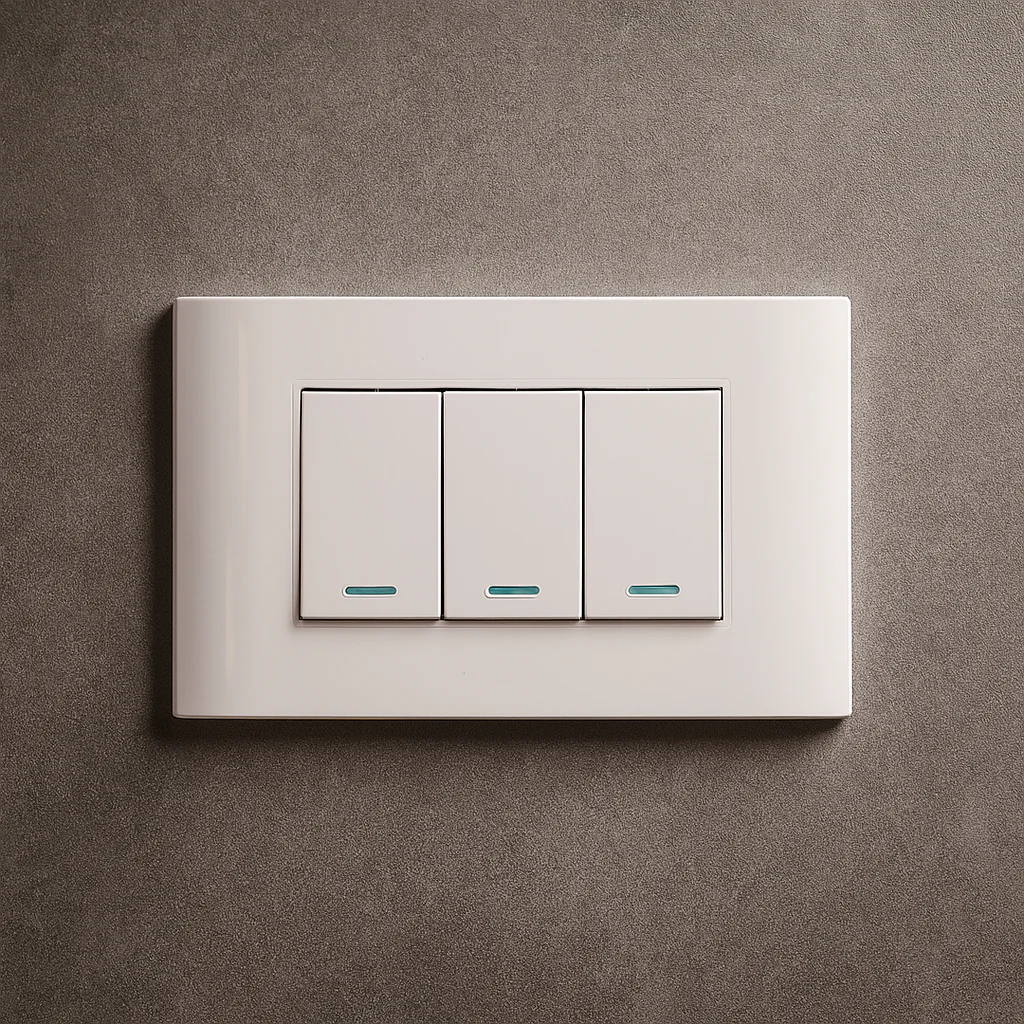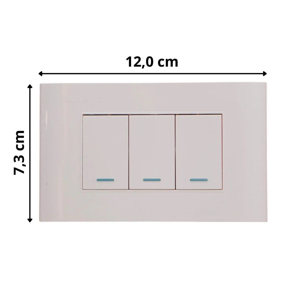 TIPO: Interruptor triple blanco para uso conmutable y/o no conmutable
