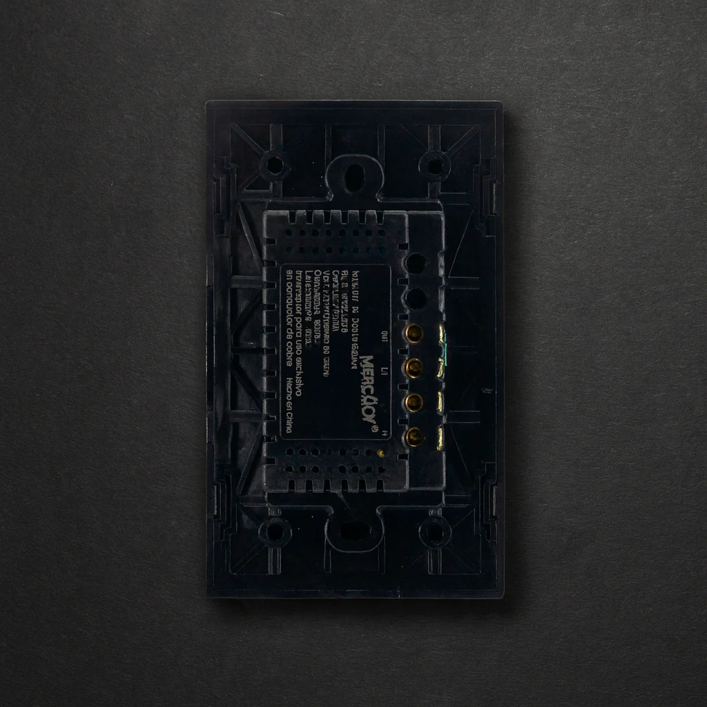 El interruptor WiFi inteligente doble de la marca Mercury es un dispositivo de alta gama diseñado para brindar comodidad, modernidad y seguridad en tu hogar u oficina. Su elegante acabado en color negro con botón touch y herrajes metálicos lo convierten en un producto resistente y estético.