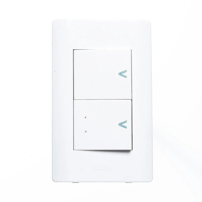 Placa de 3 módulos blanca con un apagador sencillo y uno de escalera de 1.5 módulos. Fácil de instalar. Tecla mas ancha.