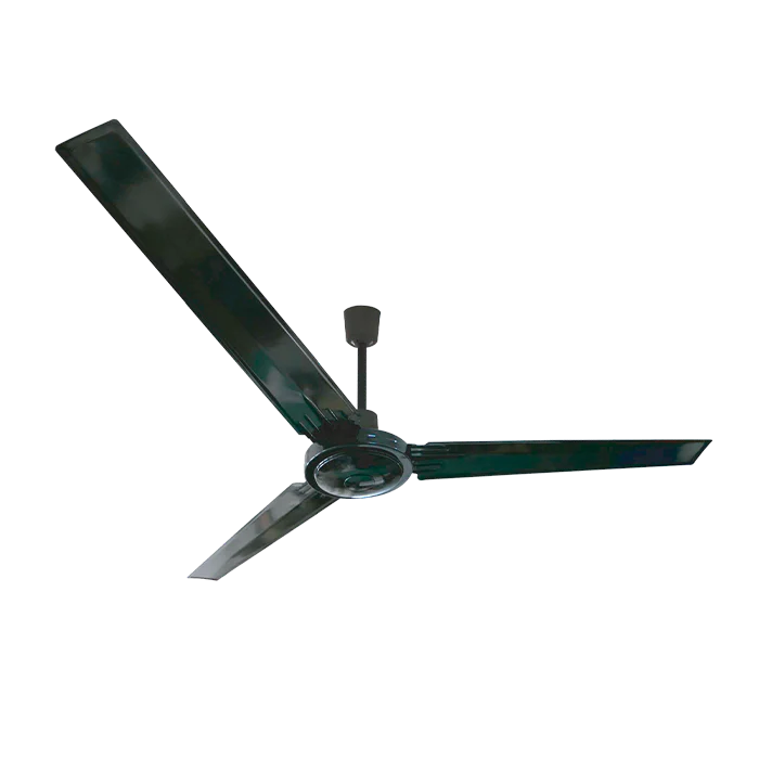 Ventilador interior industrial 56″ con acabado negro, 3 aspas de lámina, sin luz, 5 velocidades. Incluye control de pared y soporte de montaje. Alto desplazamiento de aire.